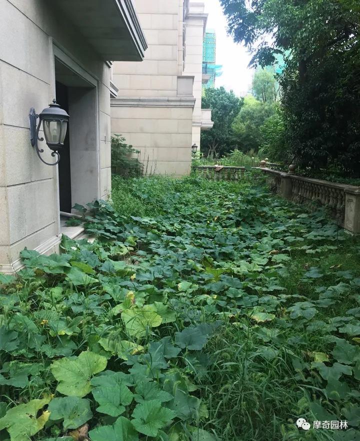 客户隔壁的样板庭院因无人管理野草疯狂生长,成为各种蚊虫的乐园。