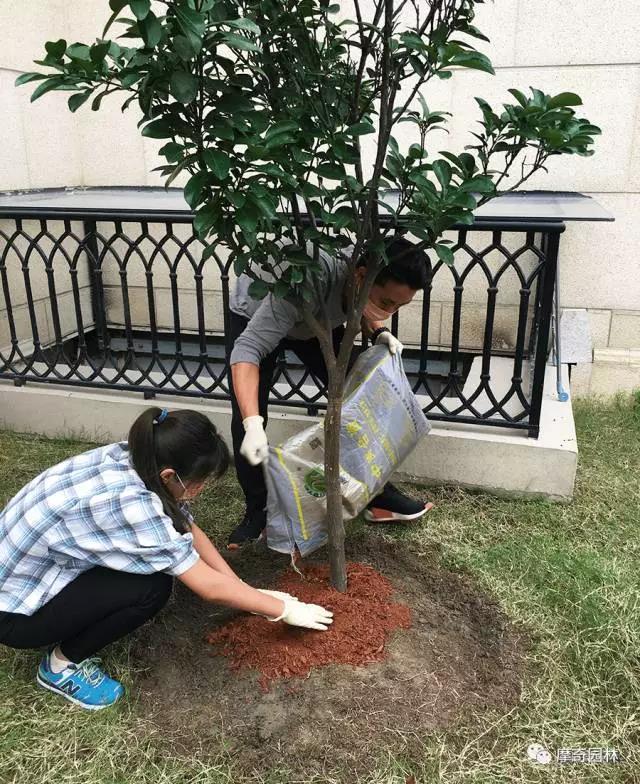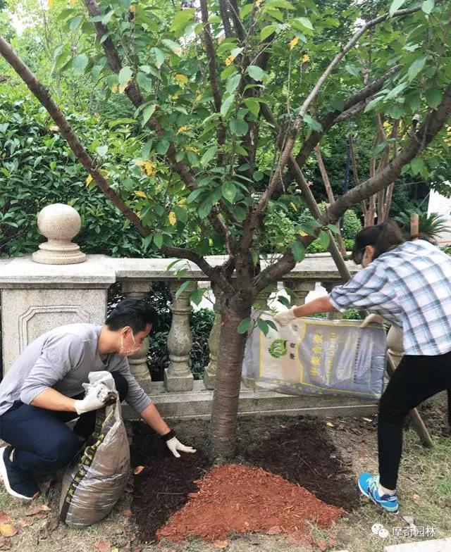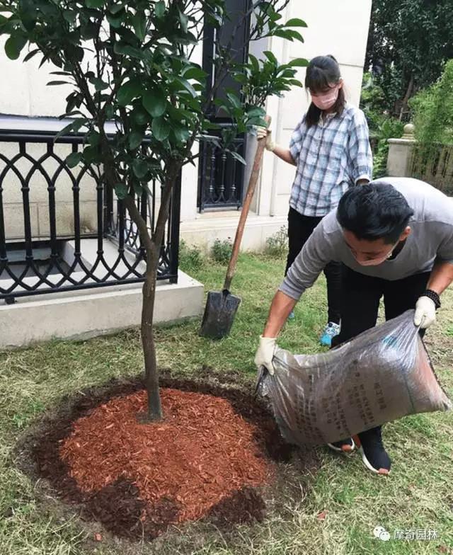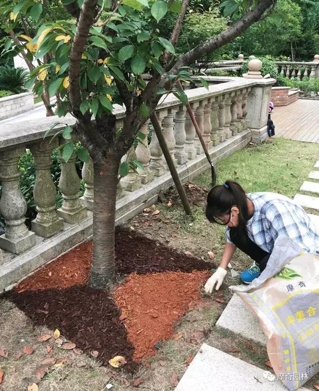 扫除多余的摩奇有机覆盖物及散落的枯叶