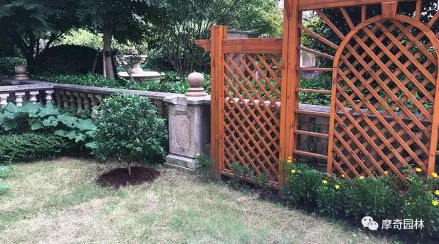点缀了摩奇有机覆盖物的庭院比最初树穴斑秃的状况好多了,草皮虽然是庭院常用的装饰材料但是打理较为困难,而且会与庭院其他的植物争抢土壤营养。