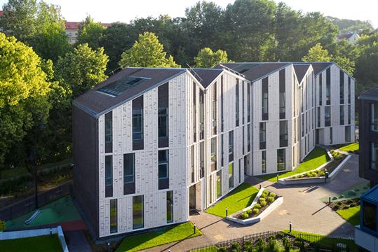 法国BFV公司建造了白色和鲜红的冲孔金属外墙学生宿舍