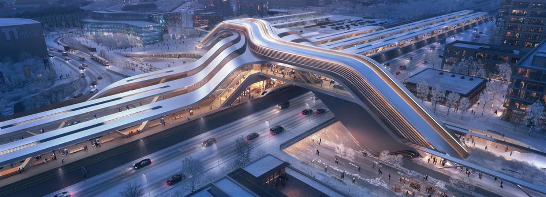 扎哈·哈迪德建筑事务所公布了塔林铁路枢纽作为公共桥梁的双重功能