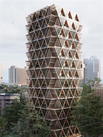 Precht设计了模块化住宅和垂直农场结合的木质摩天大楼